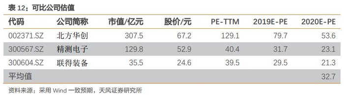 可比公司中, A 股精测电子与公司收入结构类似,同时公司业务布局有两大特点:(1) FPD业务以中小尺寸为主,景气度较高;(2)集成电路设备已经取得批量订单,进展较快,我们认为公司相比较精测电子有一定估值溢价,目前股价精测电子 PE(2019E)为 32x,我们建议 IPO 询价估值为 34-35 倍,我们预测公司 2019 年 EPS 为 0.72 元,因此建议 IPO 询价区间为 24.5-25.2 元。