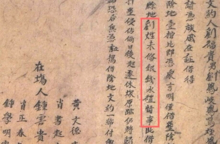 刘福贵与儿子、侄子向苏定伦借阴地的契约中,特别强调“刘姓未备银钱水礼情事”。