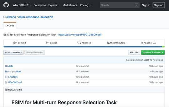 2019 年 7 月,阿里开源人机对话模型 ESIM。ESIM 是一个解决多轮对话回复问题的原创模型,通过给对话机器人装上实时搜索并理解人类真实意图的“雷达”系统,实现对对话历史的实时检索,自动去除多余信息的干扰,给出人类期待的回复。