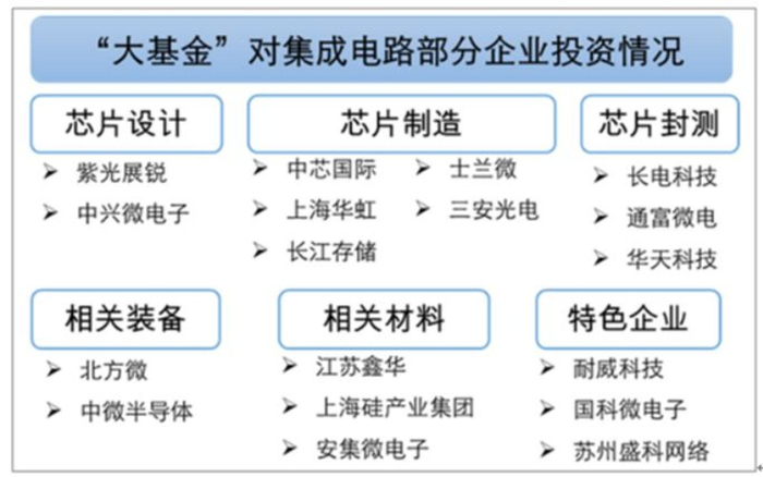 国家集成电路产业投资基金投资的部分企业情况