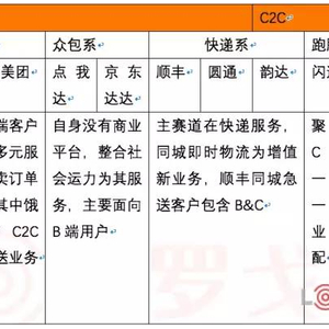 但据行业此前调查,这个细分领域绝大部分订单来自B端客户,即B2C订单,极少来自于C2C,因此很明显为B端服务的几家即配企业要么本身就是巨头,要么背靠巨头,C2C更多是创业型企业。