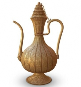 故宫藏乾隆款画珐琅冰梅纹菊瓣式执壶。