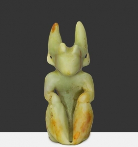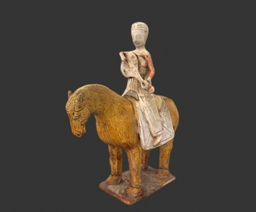 故宫藏陶黄釉画彩骑马持琵琶女俑(隋)。