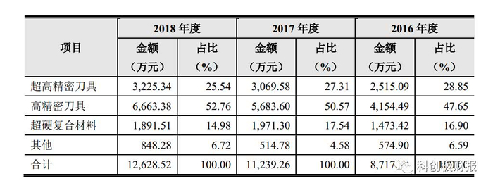 公司高精密刀具产品收入占主营业务收入比例分别为 38.34%、43.85%及 46.72%,且毛利率水平较高,系公司毛利的另一主要来源。2016 年度、2017 年度及 2018 年度,公司高精密刀具产品毛利率分别为 37.97%、 44.47%及45.60%。与超高精密刀具类似,公司在高精密刀具上有一定的技术优势,因此毛利率水平能够保持在一个较高的水平。