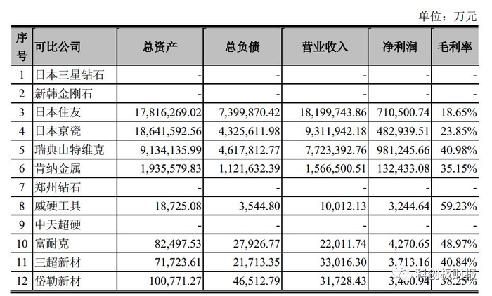公司在招股书列出了竞争对手,其中上市公司主要是三超新材岱勒新材。沃尔德的毛利率和二者较为接近但略高一些。