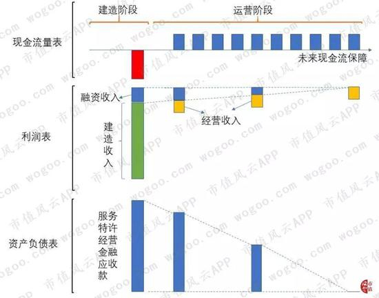 以特许经营并且有未来现金流保障的BOT项目为例,项目带来的收入可以分为建造收入,运营收入和融资收入。