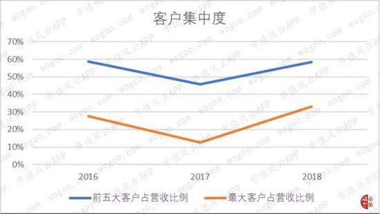 近三年,公司来自前五大客户的收入占总营收的比例分别为58.8%、45.9%和58.4%,占比较高。来自最大客户的收入占总营收的比例分别为27.6%、12.6%和33.2%。