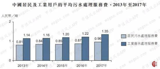 提高的不只是污水处理能力,2017年生活污水和工业废水平均处理费分别为每吨0.96元和每吨1.35元,都比2013年有所提高。