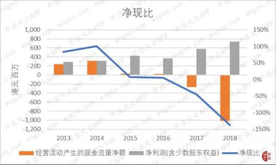 从报表中也可以看出,公司业务规模扩大,利润增加的同时,经营活动产生的现金流量净额不断减少,净现比(注:经营活动产生的现金流量净额除以净利润)持续下降。