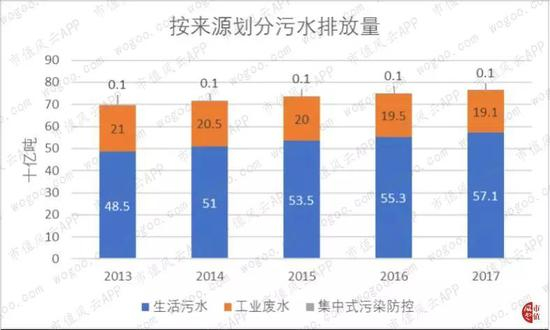 另一方面,由于产业升级以及政府在工业污染防治方面的努力,工业废水排放量相比2013年的210亿吨反而有所减少。