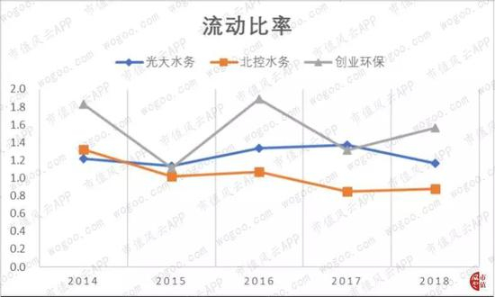 2018年,创业环保的流动比率为1.56,北控水务仅为0.88,光大水务的流动比率处于中间水平,为1.16。三家公司流动比率都不算高。