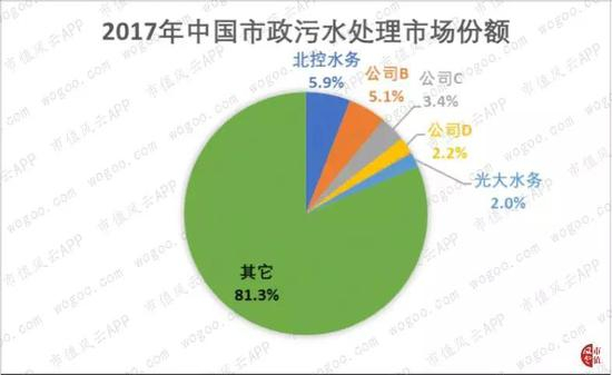 而整体生活污水处理市场份额高度分散,前五大公司份额合计仅为18.7%。