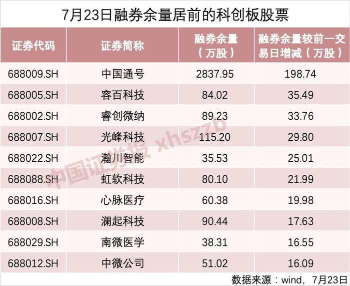 Wind数据显示,7月23日,科创板两融余额合计23.86亿元,较前一个交易日增加3.15亿元,增幅为15.19%。其中融资余额增加1.84亿元,融券余额增加1.31亿元。