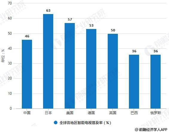 2018年全球各地区智能电视普及率统计情况