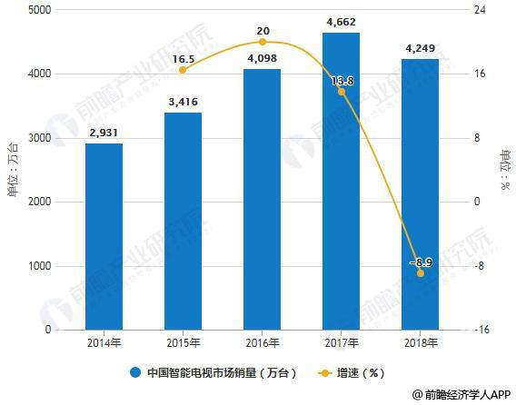 2014-2018年中国智能电视市场销量统计及增长情况