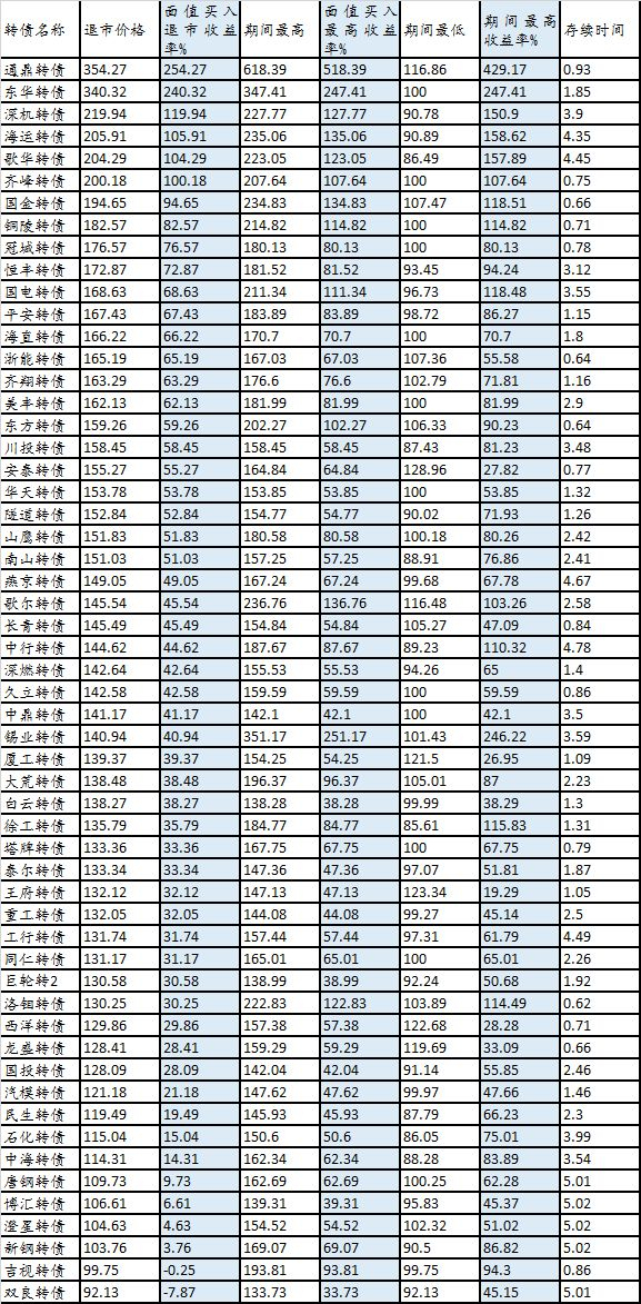 退市转债收益表
