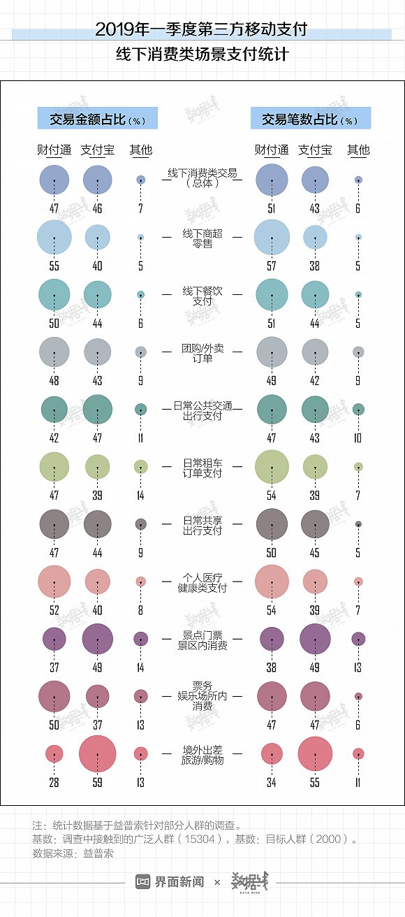市场占有率合计超过九成的支付宝和财付通(包括微信支付和手机QQ钱包),是中国消费者最常用的第三方支付应用。在日常生活中,大家使用两者时有什么偏好?市场研究机构益普索在5月发布了2019年一季度第三方移动支付用户研究报告,分析了部分消费者的移动支付行为。
