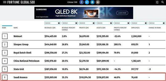 阿美石油碾压苹果入榜世界五百强前10,成世界上最赚钱的公司