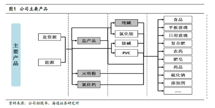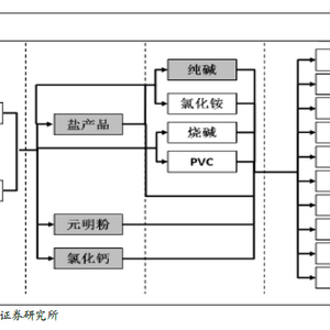 公司业务涉及产业链中采盐、制盐及盐化工部分。上游行业中,能源煤炭、电力和原材料盐资源在盐产品成本结构中占比较大。制盐所需能源、原材料价格波动将对制盐成本产生较大影响。两碱行业是制盐行业主要下游行业,且容易受宏观经济影响,具有明显的周期性,下游两碱行业需求变动将对制盐行业产生影响。