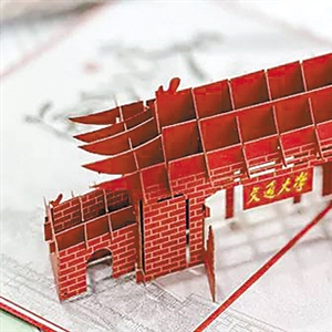 今年上海交大的录取通知书中,多了一张4D校门卡片。卡片由设计学院的学生团队打造,建筑整体按等比例高还原度缩小,全覆交大红,怀揣“凝心聚力,设计未来”的理念。而且卡片中还添加了由上海交大芳香植物研发中心特别研发的复方植物精油,一翻开,香气怡人。
