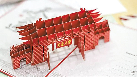 清华今年延续去年风靡网络的“3D校门”,激光雕刻工艺、30多件纸艺部件、上百个拼插结构,一座精致的立体“二校门”映入眼帘。