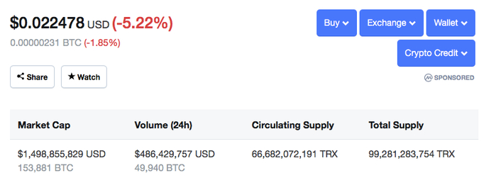 收购BT尾款逾期两月未付清,孙宇晨被疑现金流紧张,TRX市值跌出前十