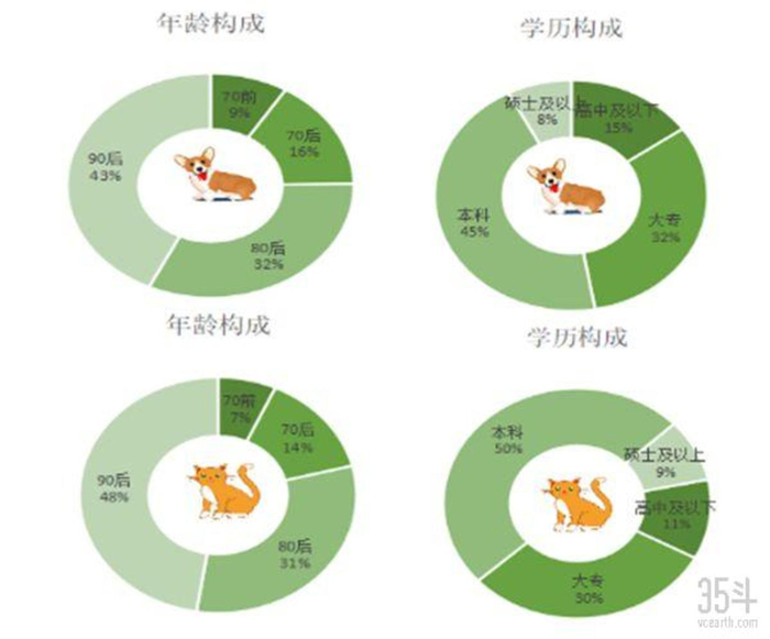 《2018年宠物行业白皮书》的数据显示,我国宠物猫/狗消费人群集中在高学历的城市年轻白领阶层。而这与平安宠物保险负责人向35斗描述的其产品消费人群画像基本吻合。