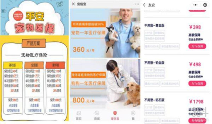 从左到右:平安宠物医保、人保宠信保、友安宠物保险,35斗搜集