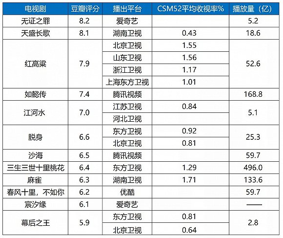 在口碑这一维度,《无证之罪》《天盛长歌》《红高粱》《如懿传》这四部作品都超过了七分,可以说是这些电影咖的电视剧作品中质量最为拔群的。并且除了《无证之罪》外,其它三部作品都是大制作的头部剧集,电影咖回归电视剧圈本身就自带光环与热度,成果直接影响到个人口碑,所以他们会相对“爱惜羽毛”,对主创和投资阵容都有着很高的要求,这也促成了这些剧集最终的“高品相”,例如,《天盛长歌》虽然在播出的过程中的关注度与收视率都不高,却后劲十足,有一批为其高级质感打call的“死忠粉”。另外,电影咖细腻、扎实的演技也是为这些剧集口碑加分的关键,无论是《天盛长歌》中的陈坤还是《如懿传》中的周迅,都贡献出了小鲜肉、小花旦们难以企及可圈可点的演技。