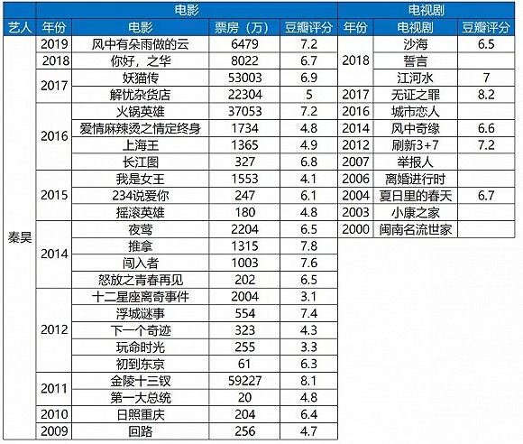 从出道开始,秦昊就一直主攻文艺片市场,2012年到2016年是他电影创作的高峰期,《浮城谜事》《推拿》都是国产文艺电影中的口碑力作。2017年之后,他开始更多尝试涉猎电视剧作品,《无证之罪》是这些电影咖们“下沉”电视剧市场产出中口碑最优异的,也让他的大众认知度和商业价值有了飞跃式的提升。