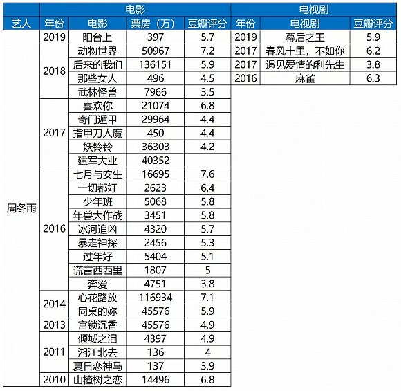 2016年,周冬雨凭借目前为止演艺生涯中最重要的作品《七月与安生》拿到了金马奖影后,她的事业活跃期也从这一年开始,到现在依然有着稳定上升的趋势。由此可见周冬雨并不是在电影领域发展受阻才转投电视剧领域,而是选择在两个方向上齐头并进。
