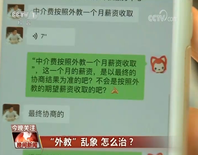 央视记者在调查时也发现,有专门的中介公司会给培训机构联络外教资源,来自英语国家、持有文教类工作签证的外教,月薪普遍在两万元以上;如果是母语非英语、持有学生签证的外教,月薪约一万元。