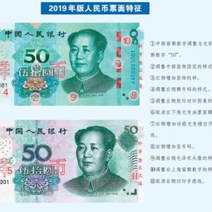据中国印钞造币总公司介绍,在现行第五套人民币纸币(2005年版50元、20元、10元纸币,1999年版1元纸币)防伪技术基础上,2019年版第五套人民币50元、20元、10元纸币也都增加了光彩光变面额数字,拥有了“亮晶晶”的效果。