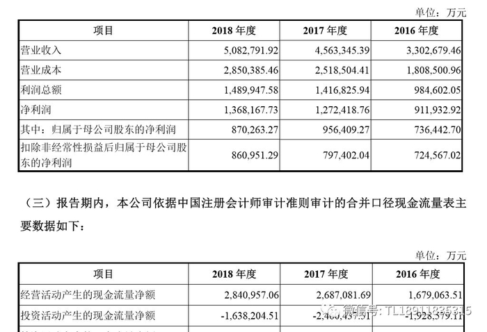 财务数据显示,2016年至2018年,公司实现营业收入330.26亿元、456.33亿元、508.27亿元;净利润分别是91.19亿元、127.24亿元、136.81亿元。