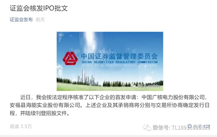 证监会核发IPO批文