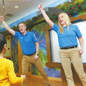 迪士尼英语外籍培训师与学员互动。