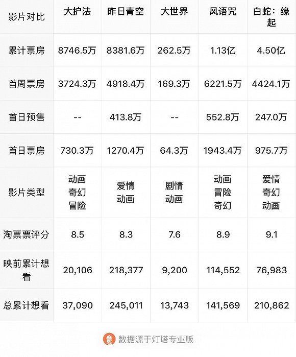 在《大圣归来》的往后几年中,市场上相继出现《大鱼海棠》《风语咒》《昨日青空》《大护法》《白蛇:缘起》等国产动画电影,尽管获得了业界的认可和一定的口碑,但是囿于题材、内容等种种因素,始终未能在市场上引起较大的观影热潮,总体票房也不甚理想。