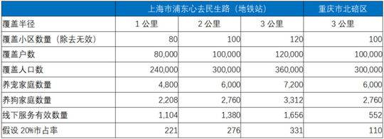 宠物保有量低,覆盖半径限制在3公里内。