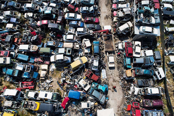 当地时间2018年9月5日,土耳其安卡拉,航拍废品回收场的废弃车辆。