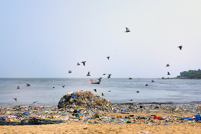 当地时间2018年6月1日,印度孟买,堆满垃圾的Versova海滩。最近两年志愿者们一直在清理Versova海滩,但每天有数吨塑料垃圾从阿拉伯海冲上海滩。
