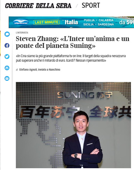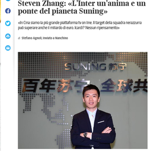 (《意大利晚邮报国米》专访国米俱乐部主席张康阳)
