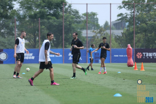 (图:国际米兰备战ICC在宁进行训练,国米新援戈丁在训练场上)
