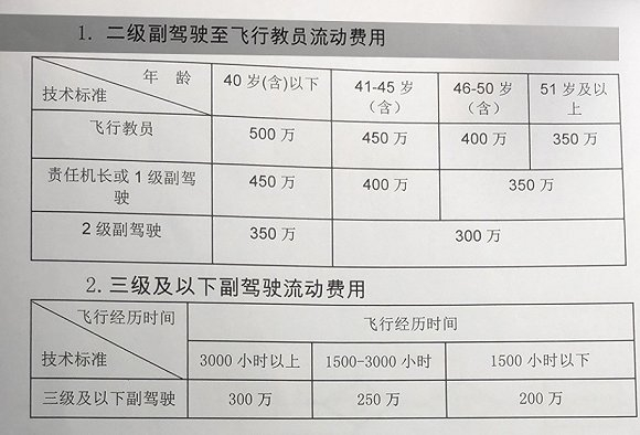 其他航空公司的赔偿要求也基本在这一区间。界面新闻了解到,目前天津航空A类飞行教员的流动费用是530万元,B、C类教员是550万元;而山东航空二级副驾驶至飞行教员的流动费用在300万-500万之间,三级以下副驾驶在200万-300万之间。
