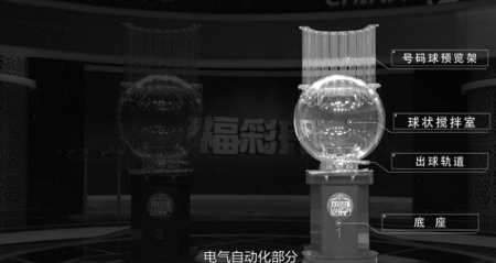 据萨维耶先生介绍,双色球摇奖机外形分为上下两个部分,上半部分包括号码球预览架、球状搅拌室以及出球轨道,下半部分包括底座及电气自动化部分,其中自动化部分主要由可编程逻辑控制器、电机、变频器和电源组件等部件构成。