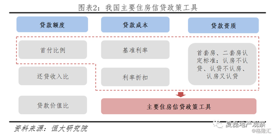 住房信贷政策收紧,居民购买力下降。我国的住房信贷政策工具可分为贷款额度、成本和资质三大类,主要工具包括首付比例、贷款利率和首套二套房认定标准。2008年以来我国商品房市场呈现典型的短周期波动特征,背后的主要原因在于住房信贷政策的逆周期调节,影响了居民购房的时机和选择。政策放松、居民住房购买力上升,则集中购房;政策收紧,居民住房购买力下降,则推迟置业。