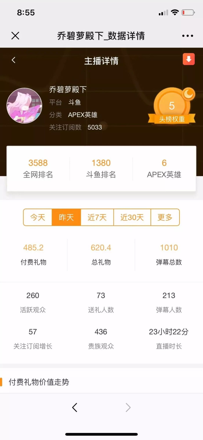 2“乔碧萝殿下”,一个在7月初才刚刚于斗鱼开启直播的主播,用了不到一个月的时间,火遍了全网,知乎、微博、斗鱼等等。仅知乎的热度,一度达到了6亿多,这个数据是多么的恐怖。