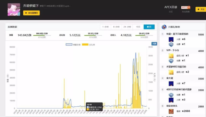 在这件事出来之前,乔碧萝的粉丝只有几万,现在是70几万,即便不直播她的直播间弹幕不停,1万多位贵宾,礼物从出事之前的每天1000元左右来到了日收入可以达到不到5万元,产生150万条弹幕。