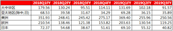 而从苹果的区域营收细分,可以推测,iPhone手机销量的下降与中国市场有着很大的关系。在2019财年Q1苹果修正了提高iPhone售价的做法,除了降价还开展了旧机置换和分期支付等多项优惠活动。而我们观察上图可以看到,大中华区的销售收入同比增速由2019Q1的-26.7%明显缩窄到了本季度的-4.1%。