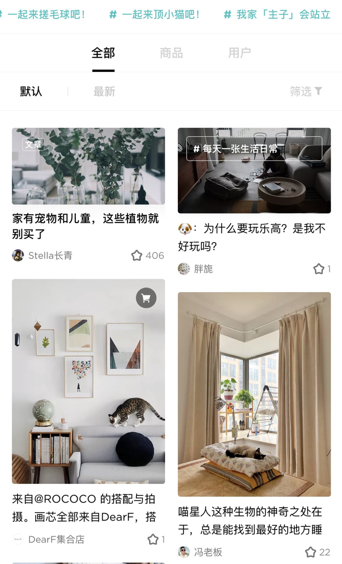 在家里为宠物设计一个空间,李书不是个例,在家居社区“好好住”上,“宠物”已经是热门话题,在#我家主子会“站立”、#宠物用品推荐大会等标签下,数万用户分享她们是如何与主子们一起愉快生活的。
