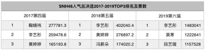 在7月初第六届总决选中报公布时,就有媒体发现一直紧随李艺彤其后的黄婷婷,以及冯薪朵、赵粤等人气选手都未出现在top48排名中,这些老成员在今年打投期间都未发起集资活动,她们的消极参赛让李艺彤的粉丝不用花费太多资金在投票上,因而今年的总决选,也首次出现了TOP3未拉开巨大差距的结果。
